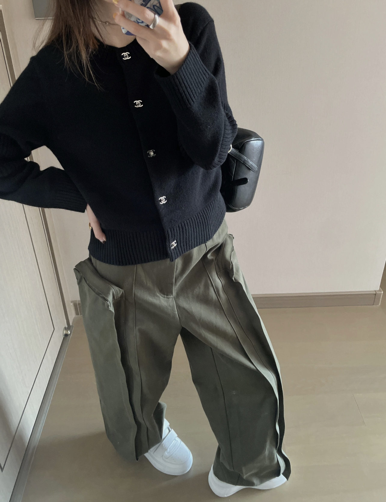 CC Exquisite button knit cardigan(Black high-top)